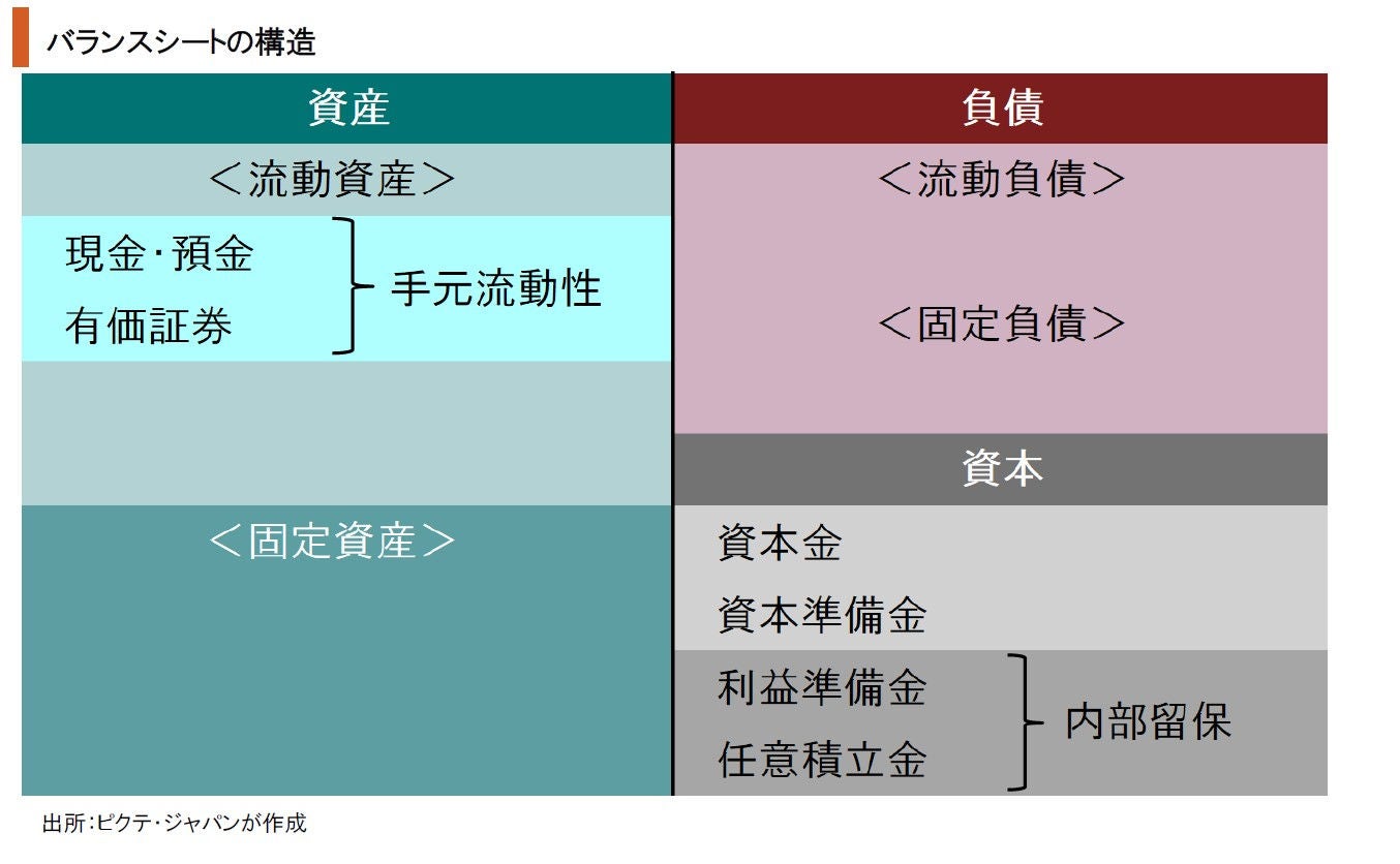 内部留保は基本的に利益剰余金であり、資本の部の利益準備金と任意積立金から構成される。バランスシートの貸方(右側)なので、資金の調達手段に他ならない。一方、現預金は借方(左側)に計上される資産だ。従って、内部留保で調達された資金が、現預金など手元流動性になっているケースがある一方、設備投資に使われていることも少なくないだろう。
