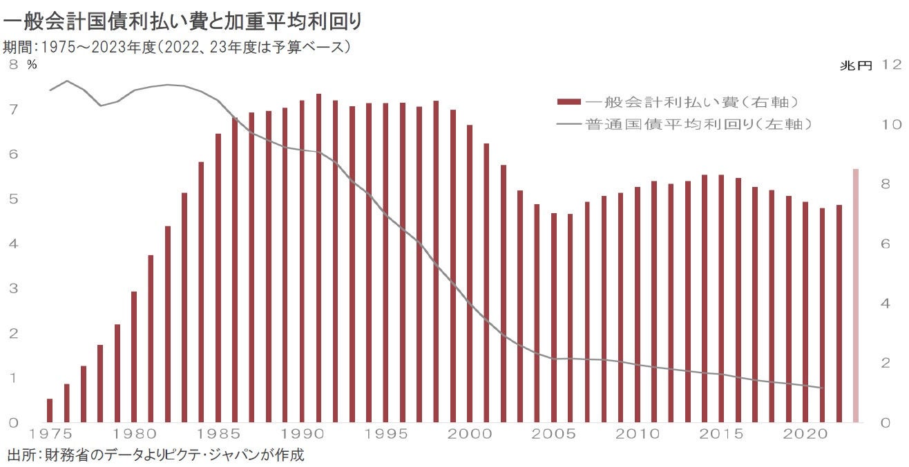 1990年代に入ってのグローバリゼーションの下、主要国では物価が安定し、日本はデフレに陥った。結果として、名目金利は趨勢的に低下している。また、2013年4月以降の量的・質的緩和により、低金利下で日銀が国債を大量に購入したことから、政府は利払い費の負担を気にすることなく国債を発行することが可能になった。それが、財政規律を弛緩させ、国家債務が急増する要因になったと言えよう。