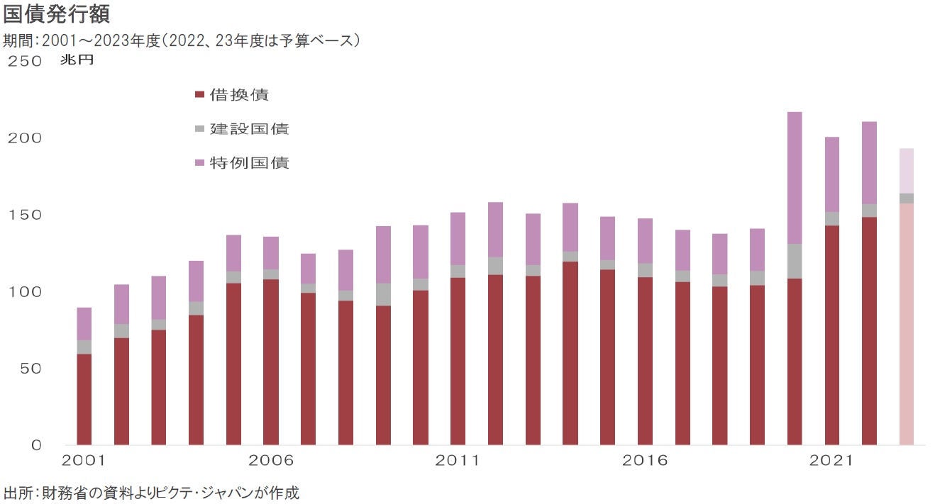 ■ 新規財源債と借換債で年間の国債発行額は200兆円を超える