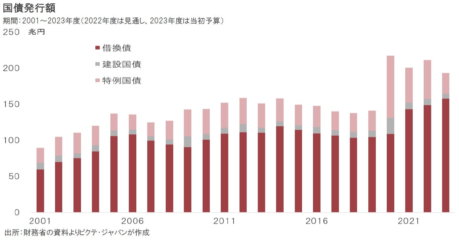 2023年度は当初予算案ベースで193兆1,743億円の国債発行が予定されている。日銀が出口戦略を急いで市場金利が急上昇すれば、1%ポイントにつき年間2兆円ずつの利払い費の増加となるだろう。これは、財政を急速に悪化させかねない。日銀の量的質的緩和に依存した財政が続けられてきたことで、実質的な財政ファインナンスを前提としない限り、国債の安定消化は難しくなったと言えるだろう。