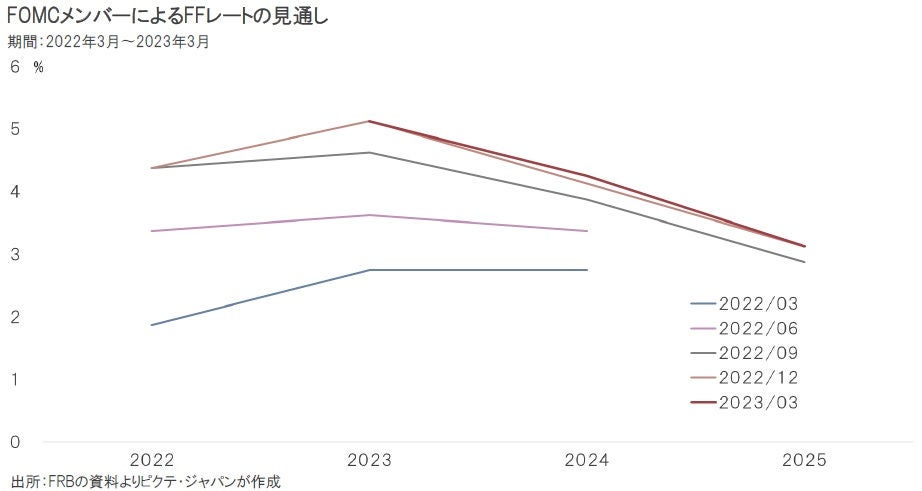 ■ 2022年は回を追う毎に政策金利の予測が上振れした