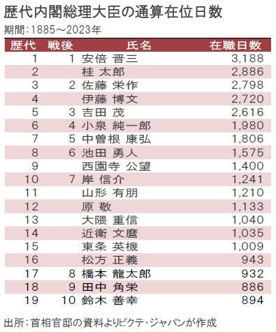 ■ 岸田首相は今のところ歴代32位、戦後17位