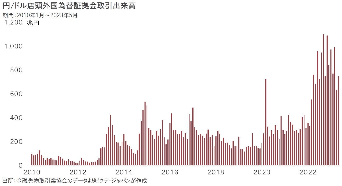 金融先物取引所協議会によれば、2022年におけるFX事業者の経由円/ドル取引金額は月間756兆1,971憶円、1営業日平均にすると37兆382億円だった。回転が速く投機的性質の強い個人中心の売買とは言え、ボリュームは極めて大きい。仮に数兆円規模で実施したとしても、為替介入の限界は明らかだ。つまり、為替介入は時間稼ぎに過ぎず、円安の抑止にはより抜本的な施策の必要があるだろう。