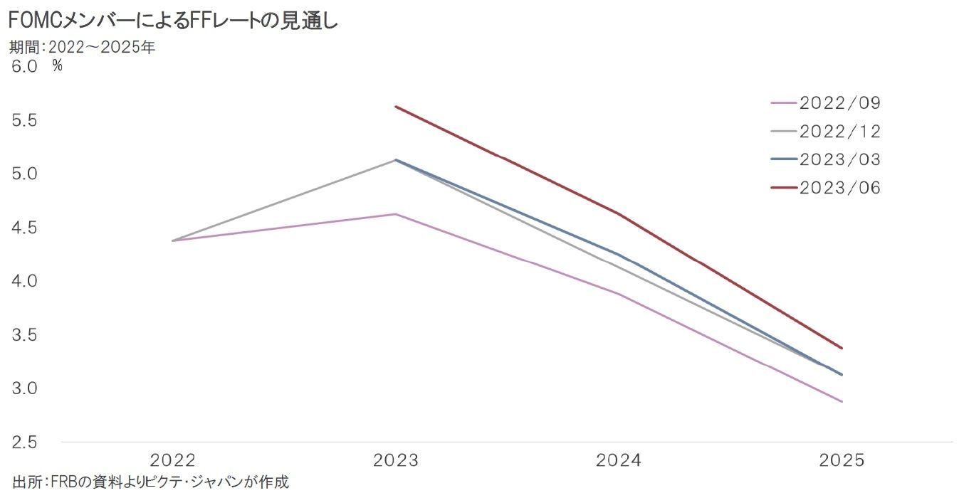 ■ FOMC参加メンバーによる政策金利の予測は上振れ