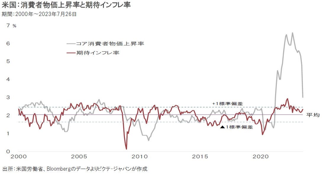 7月25、26日のFOMCで、FRBは0.25%の利上げを行った。委員会後の記者会見において、ジェローム・パウエル議長は、米国が景気後退期に入るとの見方を否定する一方、先行きの金融政策に関しては言質を与えていない。次のFOMCは夏休みシーズン後の9月19、20日だ。それまでに発表される経済指標、マーケットの動きを見極める意向なのだろう。いずれにしても、FRBの利上げは最終段階にあるのではないか。消費者物価の推移、FFレートと物価上昇率の関係、実質賃金の伸び、そして失業率・・・この4つをベンチマークとした場合、利上げを終える条件が既に整っているからだ。ただし、歴史的な人手不足に直面するなかで、賃金の上昇を通じてインフレ傾向は今後も続くと考えられる。従って、仮に利上げ局面が収束したとしても、直ぐに利下げが行われるわけではないだろう。短期金利が高止まりする結果、長期金利に上昇圧力が掛かる場面があるのではないか。次のFOMCが2ヶ月後となるだけに、8月下旬のジャクソンホール会議は注目を集めるだろう。