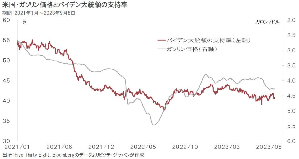 米国は世界有数の自動車大国であり、ガソリン価格は国民生活に強く影響する。それ故、バイデン大統領の支持率はガソリン価格と連動してきた。雇用市場の堅調は続いているものの、原油価格の再上昇によりインフレ圧力が再び強まれば、2024年11月へ向けたバイデン大統領の再選戦略に大きな狂いが生じかねない。バイデン政権としては、サウジアラビアとの関係改善を含め、原油価格安定に注力せざるを得ないだろう。