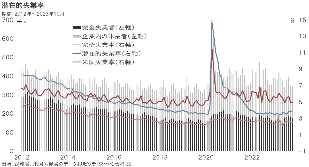 ■ 企業内休業者を含めれば日本の失業率は米国以上