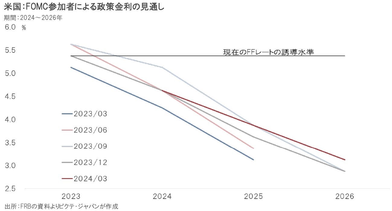 ■ FOMCメンバーは2024年中に3回の利下げを示唆