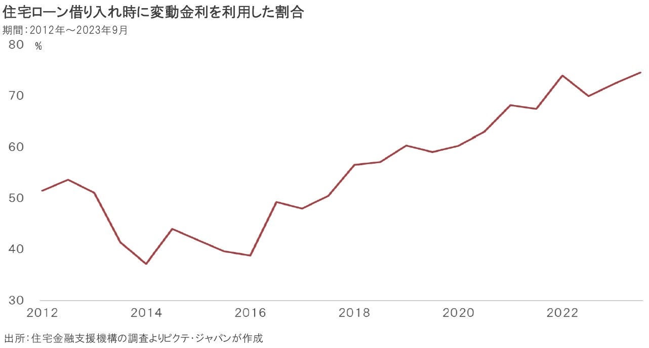 ■ 変動金利を選択する借入者は7割を超えている