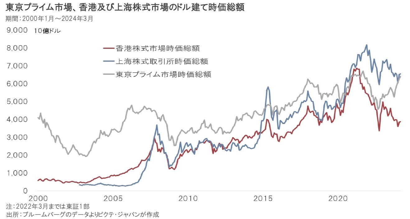 1980年代にニューヨーク、ロンドンと並び『3大金融市場』に数えられていた東京の地位が急低下したのは、バブル崩壊以降、日本株の低迷が長く続いたことが主因だ。しかしながら、新型コロナ期以降、低迷する中国株に対し、日本株は好調を持続している。結果として、東証プライム市場の時価総額は、香港、上海市場を再び上回った。こうしたマーケットの状況は、世界のなかで東京が注目を集める一因だ。