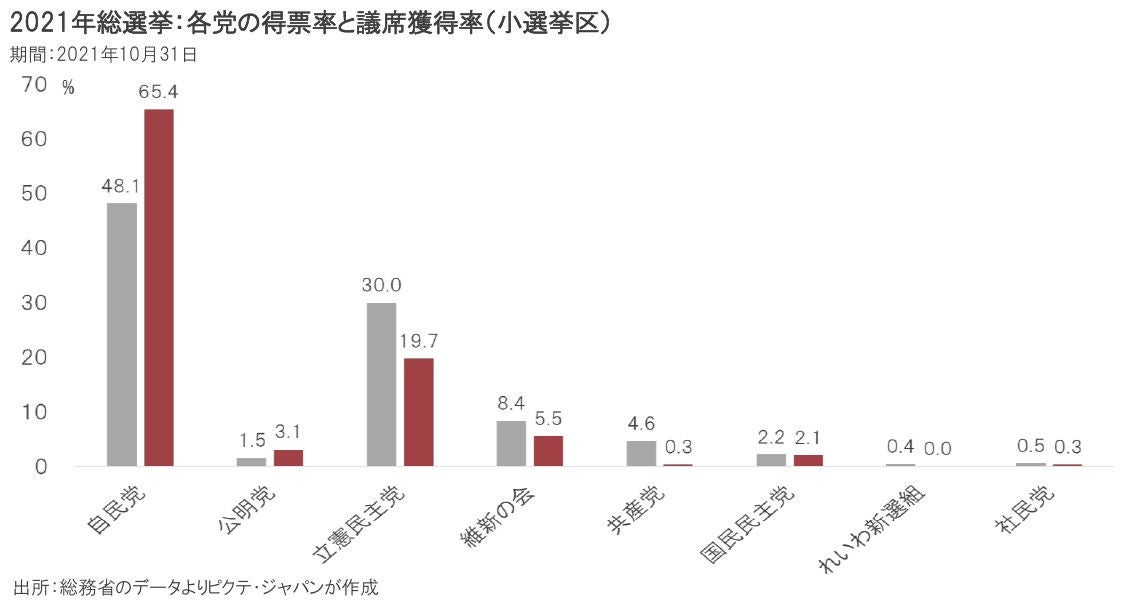 前回総選挙において、自民党の小選挙区での得票率は48.1%だ。もっとも、定数289議席に対し、同党の獲得議席は189議席、獲得率は65.4%に達した。これは、1選挙区当たり1人を選ぶ小選挙区の特徴を反映している。また、同党は小選挙区での候補者が9名に止まる公明党より全国レベルで支援を得られる。結果として、野党側への期待が相当盛り上がらない限り、自民党は小選挙区では強さを発揮するのではないか。