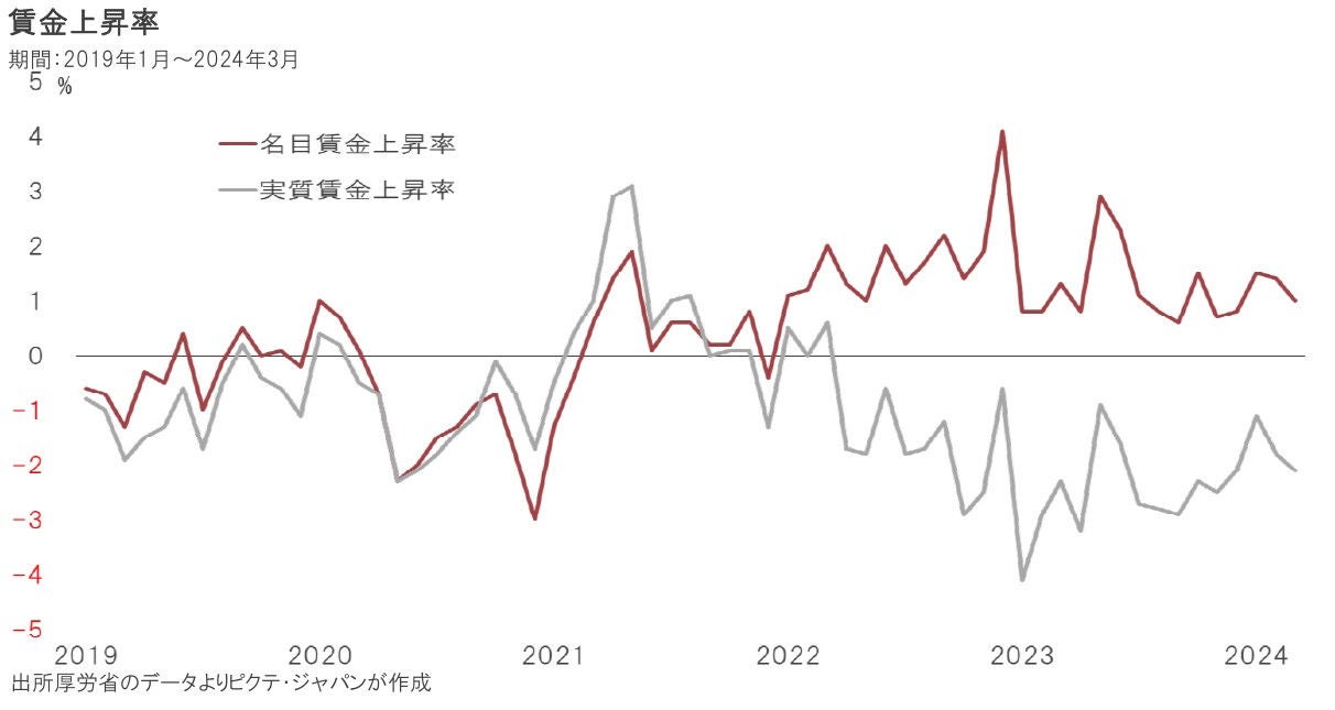 インフレは通貨価値の下落であり、相対的にインフレ率の大きな通貨は売られる可能性が強い。さらに、通貨安は輸入物価の上昇を通じてインフレを加速させる。今の日本経済は、そうした円安とインフレの悪循環に陥りつつあるようだ。結果として、賃上げが実現したとしても、実質賃金の伸びがマイナスになる可能性は否定できない。インフレ懸念による不安心理は、消費に影響し、定額減税の効果を削ぐことも考えられる。
