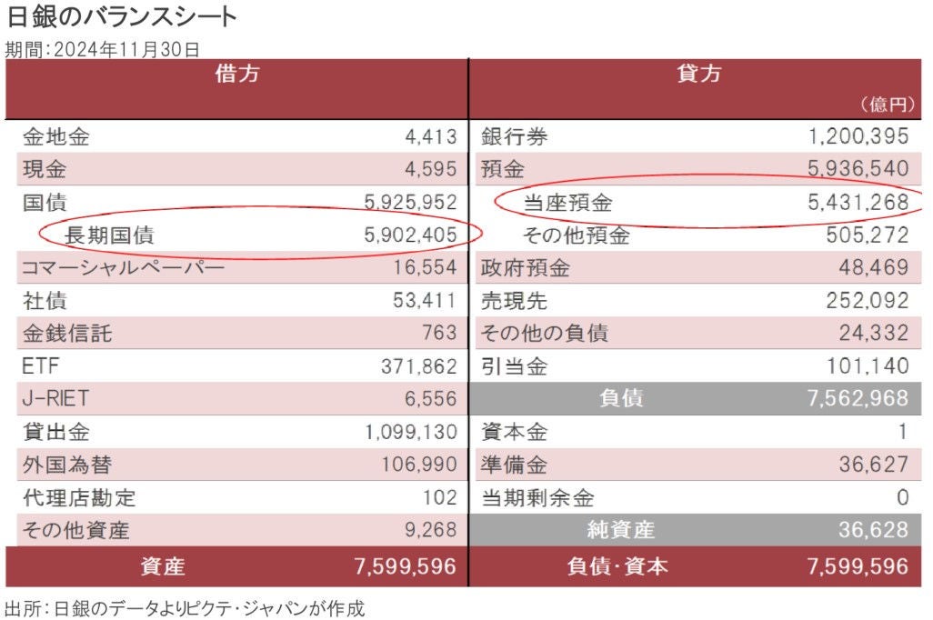 ■ 資産の保有長期国債は負債の当座預金残高に対等