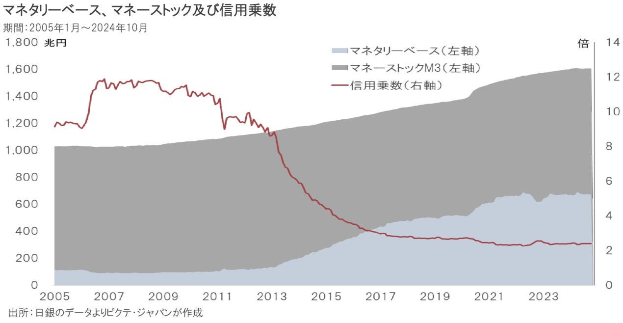 ■ マネタリーベースの大量供給でも与信は伸びず信用乗数が急低下