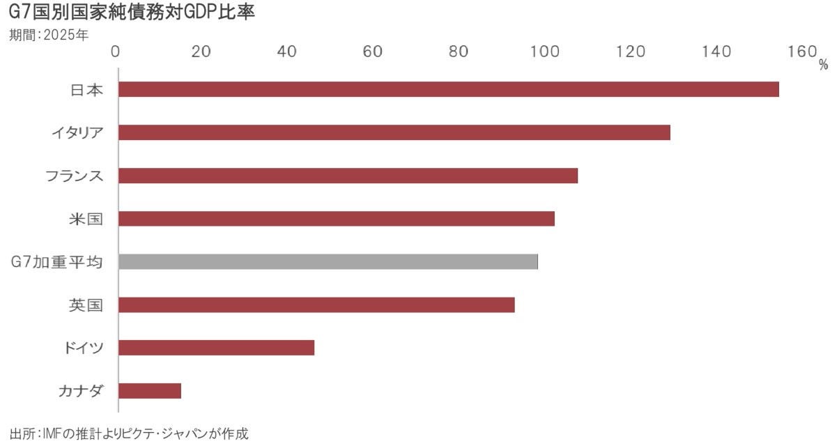 G7で名目GDPに対する国家純債務残高の比率が最も多いのは日本だ。IMFの推計によれば、2025年は153.9%に達し、G7の平均である97.8%を大きく上回った。1月24日に召集された通常国会では、2025年度予算の審議へ向け、主要野党が一段の歳出の拡大を求めている。衆議院で少数となった石破政権は、予算成立のため野党の提案を受け入れざるを得ず、歳出見直しの機運は高まっていない。