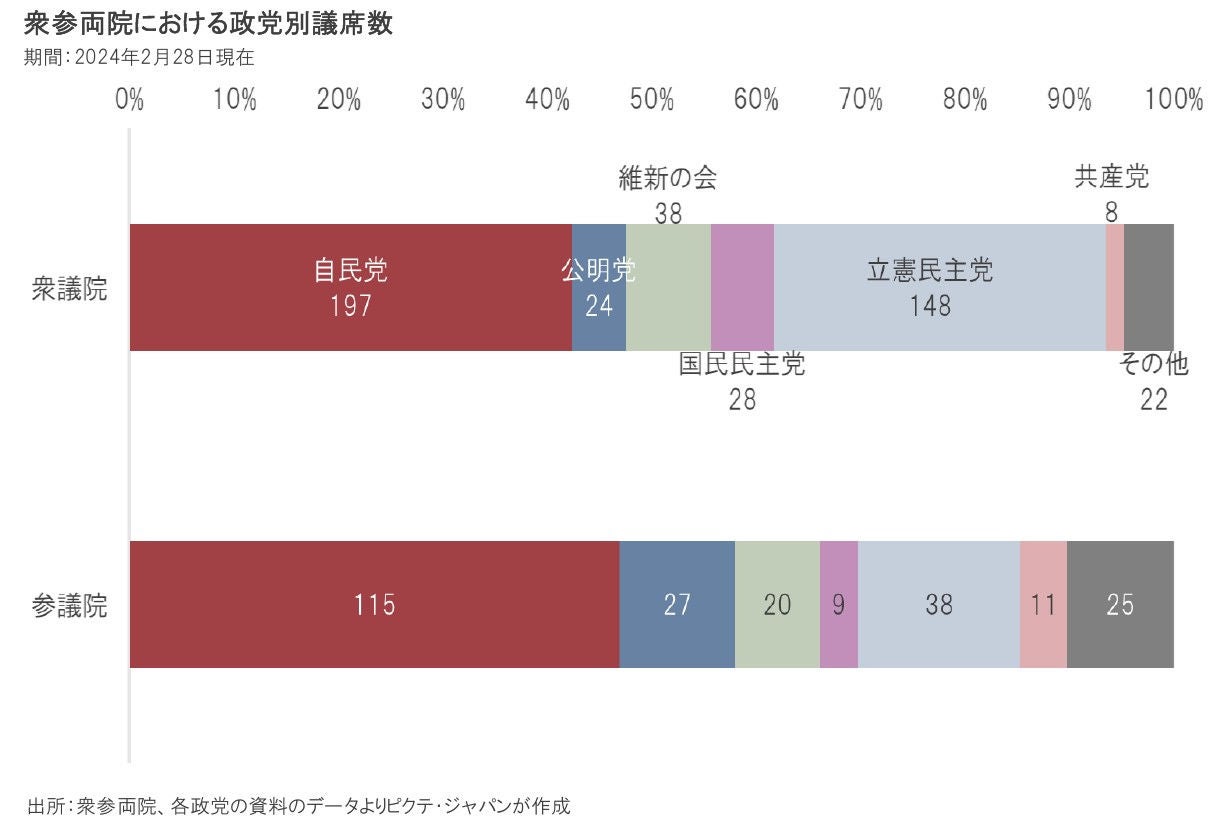 参議院は、現在、定数が248議席、議員の任期は6年で、衆議院と異なり任期中における解散はない。選挙は、定数の半数、つまり124議席を3年毎に改選する仕組みだ。1つの政党が参議院で過半数を確保するには、基本的に2回連続で勝たなければならない。1989年の選挙で大敗して以降、自民党は参議院で過半数を持たない時期が大半であり、結果として日本の政治は連立の時代に突入した。