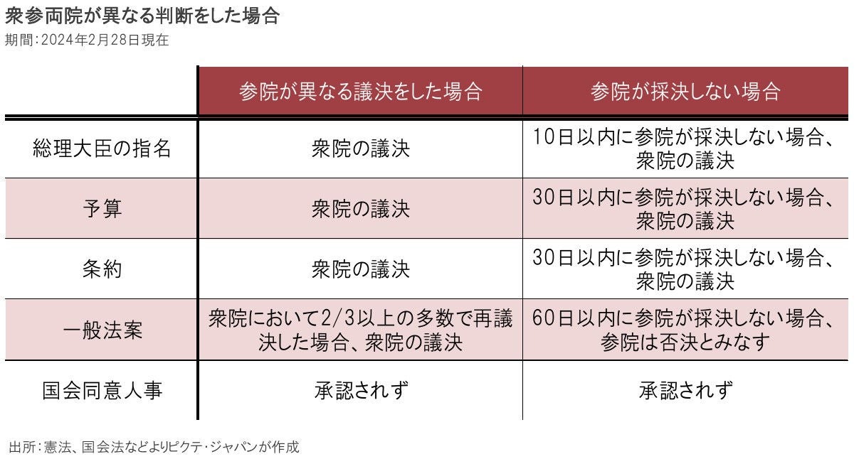 ■ 一般法案、国会同意人事は基本的に衆参両院の権限は同党