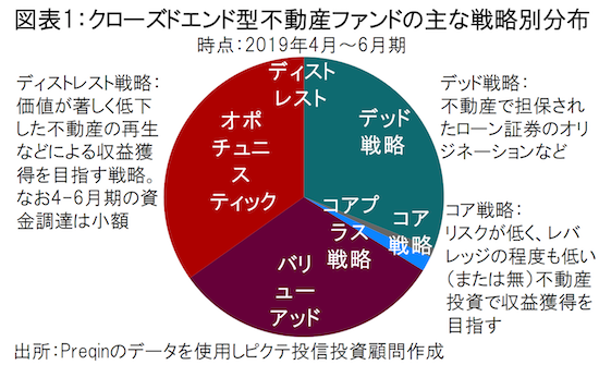 ディストレスト戦略は4-6月期では資金が集まっていませんが、興味を示す投資家もいるという報道が見られます。例えば、英フィナンシャル・タイムズによると、ディストレスト不動産投資を考える投資ファンド(プライベートエクイティ)は19年第1四半期に80億ドル調達しており、これは18年の年間10億ドル、17年の33億ドルを既に上回っています。4-6月期は集めすぎの反動なのか、今後の動向に注目しています。