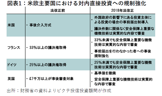 10月18日に閣議決定され、政府が今臨時国会での成立を期す外為法改正案は、外資への規制強化として海外の報道機関、外資系証券の評判が良くない。ただし、見逃せない事実は、昨年、米欧主要国が一斉に対内直接投資への規制強化に動いたことだ(図表1)。