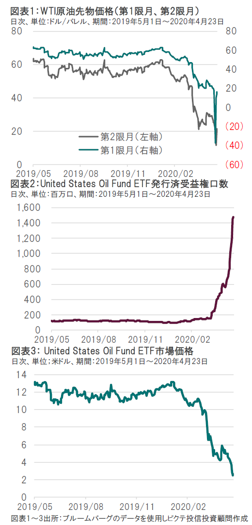 WTI原油先物価格は、主にコロナショックをきっかけとした原油需給の悪化を背景に一時マイナス40.32ドルをつけるなど、大きく乱高下する展開になった。米国上場のUnited States Oil Fund(世界最大の原油ETF)には押し目買いを狙った資金流入が加速したが、そのETF市場価格は16日(木)から23日(木)までの1週間で39%も下落した。いったい何が問題だったのか?