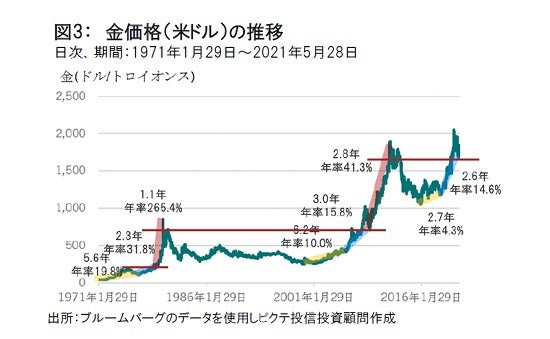 今後インフレが実際に台頭してくるかどうかまだ不透明であるが、現在の低金利下においては国債の代替としての金の重要性は増している。金を組み込んだ分散投資の時代がすでに到来していると考えるほうが妥当と考える。