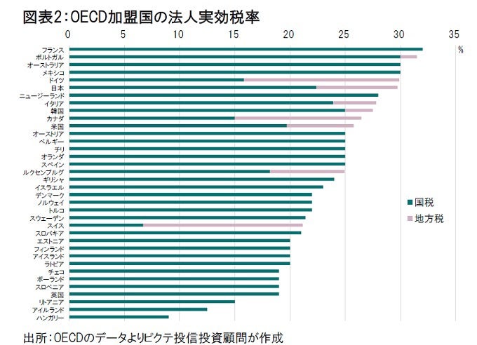 この米国の動きは、同じく財源不足に苦しむ主要国に好意的に評価された模様だ。特に当初は最低税率21%を主張していた米国が、15%へとハードルを下げたことにより、OECD加盟国で対象となるのはハンガリー(実効税率9%)、アイルランド(12.5%)などに限られ、受け入れられ易くなった(図表2)。