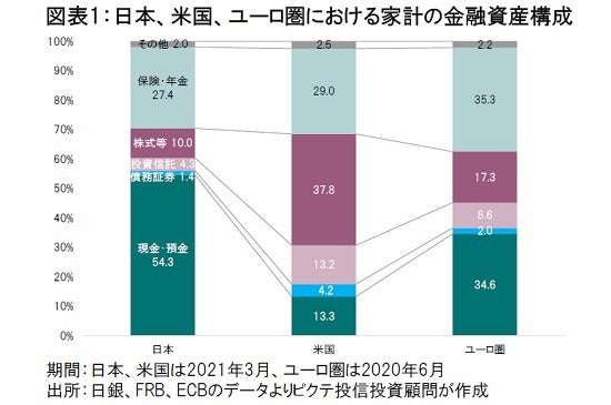 一方、株式、投資信託の合計は、日本の14.3%に対し、米国は52.1%、ユーロ圏は25.9%だった。相対的に見て、日本の家計においては、金融資産を積極的に運用するよりも、価値を減らさないことが重視されてきたのだろう。