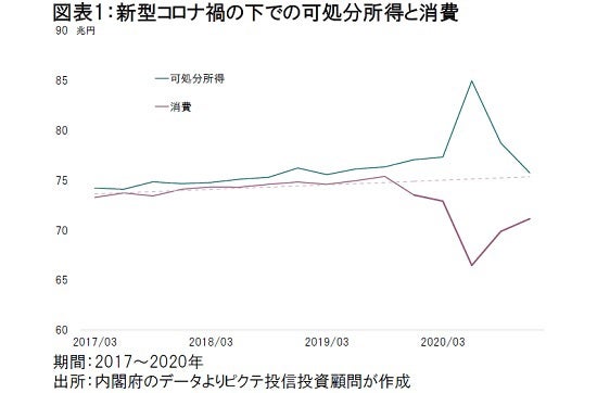 ワクチン接種が進み、経済が正常化に向かえば、消費は回復し、日銀の言う「強制貯蓄」の一部は取り崩されるだろう。