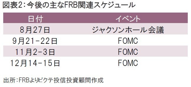 年内のFOMCは9月、11月、12月の計3回が予定されているが、9月のFOMCでテーパリングが開始される可能性は低いだろう(図表2)。