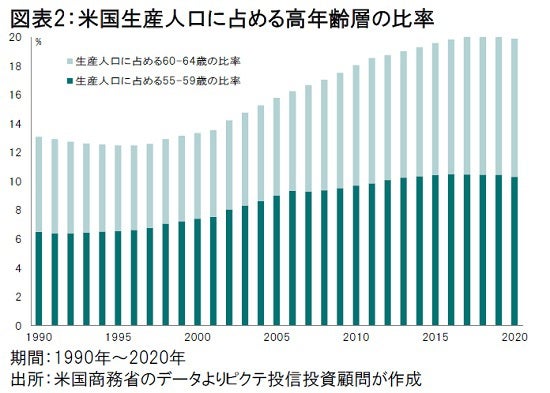 これは構造的な労働力不足の要因だ。雇用のミスマッチに加え、高齢化による労働力人口の伸び悩みは、雇用需給のひっ迫が続く可能性を示唆している。オートメーション技術の活用による効率化が図られるとしても、パウエル議長の議会証言通り、賃金の伸びが高止まりして、インフレ圧力となるシナリオには十分な蓋然性があるだろう。