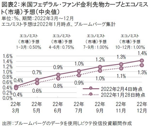 1月FOMC(米国連邦公開市場委員会)後のパウエルFRB(米国連邦準備制度理事会)議長の記者会見等をきっかけに、マーケットでは今年3月の利上げが0.25%ではなく0.50%もありうるとの観測が広がったほか、利上げペースも1月FOMC前の市場予想であった年4回からさらに加速するシナリオを一部織り込む展開となったことは、先週のDeep Insightレポートでお伝えしたとおりだ。