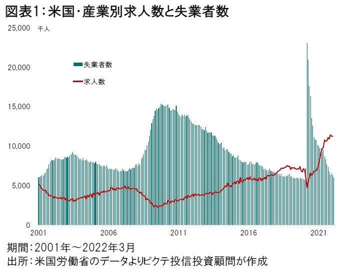 ただし、より構造的な問題として、深刻な労働力不足による賃金の上昇も影響しつつあるのではないか。2月の産業別求人数は1,127万人であり、8ヶ月連続で1千万人台となった(図表1)。一方、3月の失業者(≒求職者)は595万人で、求人との間には労働力人口の3.2%に相当する532万人のギャップが存在する。新型コロナ禍により年齢の高い層がリタイアした上、移民の流入が細っていることが要因だろう。