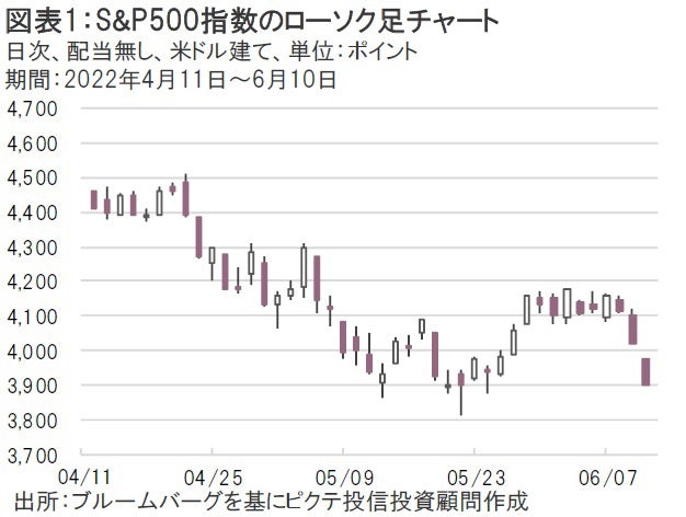 先週のS&P500指数は①「タカ派的なECBの金融政策」や②「米国5月CPIの上振れ」などをきっかけに急落する展開となった。中でも②は市場に蔓延していたインフレ・ピークアウト説を覆したため、金融市場に与えた衝撃は相当大きい。FRBは物価抑制の観点においてマーケットから「信認」を得るため、今週のFOMCではさらにタカ派メッセージを強化することが予想される。