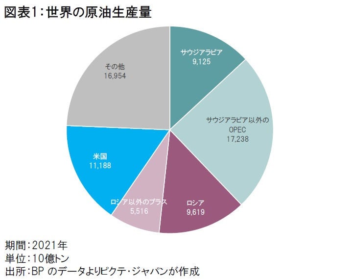 バイデン大統領の賭けが成果を挙げるか否かは、8月3日の次回JMMCの結果に懸かっていると言っても過言ではない。OPEC13ヶ国、非OPEC産油国10ヶ国で構成されるOPECプラスは、昨年の世界産油量の59.6%を占めている(図表1)。その動向が原油市況に与える影響は極めて大きい。