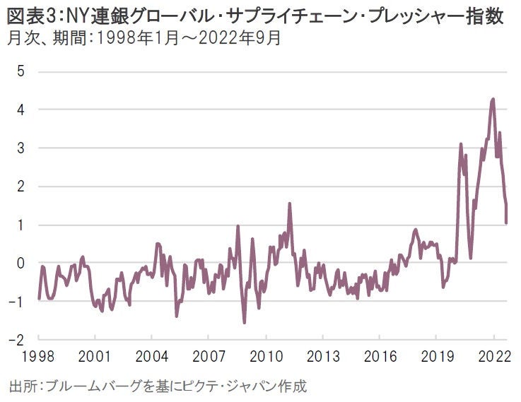 しかし、急激な物価高騰や景気減速による「需要減退」を理由に業績ガイダンスを下方修正する企業が散見され始めている。また、グローバル・サプライチェーンのボトルネックに端を発した在庫不足についても既に足元では解消しており、むしろ「在庫増加」による評価損を強いられる企業も出てくるのではないか(図表3)。