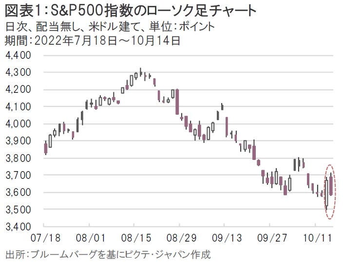 10月13日の米国株式市場は米9月CPIをきっかけにショートカバー主導で大幅高となったが、翌日には米ミシガン大学消費者調査のインフレ期待が上振れたことを受けて急反落する展開となった。粘着性の高い5~10年先のインフレ期待が再加速したことなどを受けて、FRBのターミナルレートにおける市場予想は14日時点で4.96%まで上昇した。
