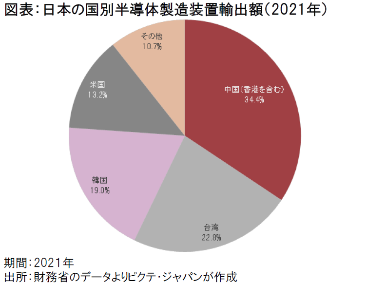 日本企業は規制対象となる半導体を製造していないと見られる。一方、半導体製造装置は、2021年の輸出額のうち34%を中国が占めており、影響は無視できないだろう(図表)。想定される減少分を日本、米国、台湾、韓国市場で補えなければ、経済的なダメージが避けられない。経産省がTSMCやウエスタンデジタルの工場に補助金を給付するのは、国内における半導体製造装置の市場を確保することも理由と考えられる。ただ、政府が規制の範囲を明確に示していないことで、業界には不安感が広がっている模様だ。