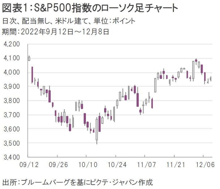 11月30日のパウエルFRB(米連邦準備制度理事会)議長講演をきっかけに株価が急騰したことが、そもそも「ミスプライス」だった可能性がある。パウエルFRB議長はその講演で、早ければ12月のFOMC(米連邦公開市場委員会)で利上げペースが鈍化すると示唆し、ターミナル・レート(政策金利の最終到達点)も9月時点の予想よりもやや高めに引き上げられる可能性があると言及した。また、インフレが低下しているかどうかも、単月のデータだけでは判断できないとした。これらは全て従前通りの見解だった。