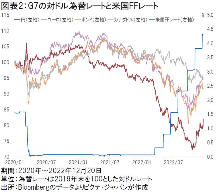 3月のFOMCでFRBが最初の利上げを行って以降、円は対ドルで急落した(図表2)。