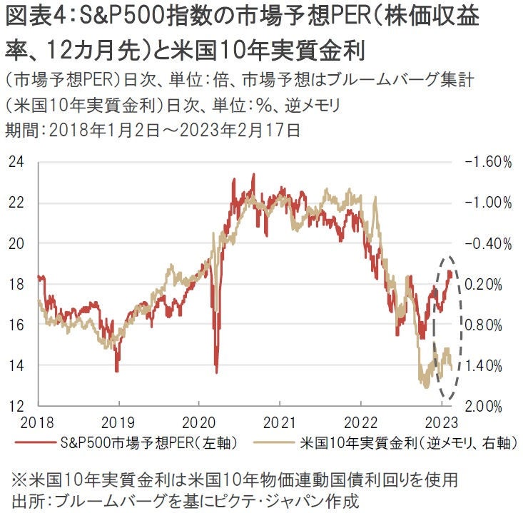 気掛かりなのは、S&P500指数の市場予想PERと米国10年実質金利とのギャップだ(図表4)。
