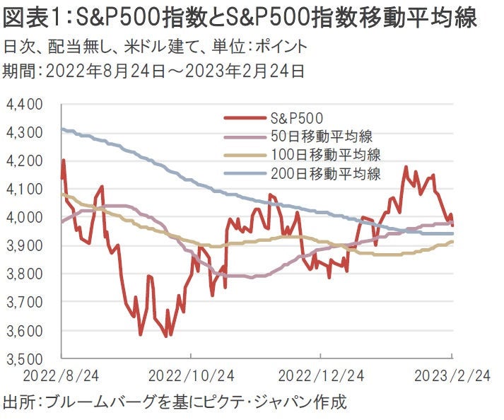先週1週間のS&P500指数は、FRB(米連邦準備制度理事会)による金融引き締め期間の長期化等が嫌気され、週間騰落率は2.67%安と3週連続の下落となった。また、S&P500指数は2月24日(金)に50日移動平均線を割り込む展開となり、急速に株価トレンドが悪化している(図表1)。