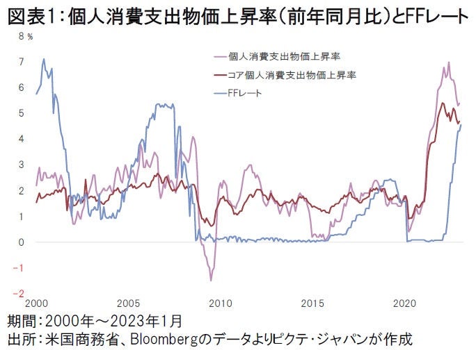 FRBがベンチマークとして重視するコア個人消費支出(PCE)物価は、1月、前年同月比4.7%の上昇だった(図表1)。