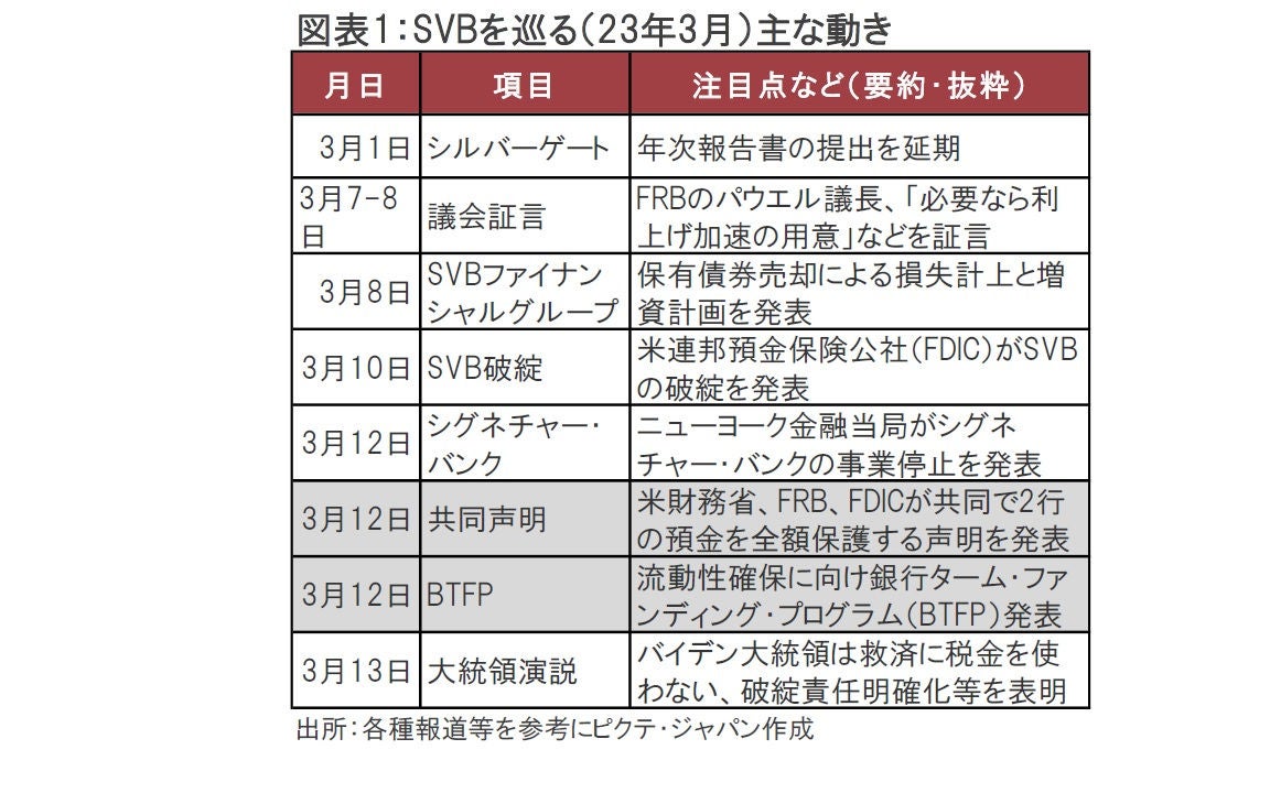 SVBファイナンシャル・グループ傘下のシリコンバレー銀行(SVB)の経営破綻などを受け、預金者保護を拡大により銀行システムへの信頼を強化する安全措置を公表しました(図表1参照)。