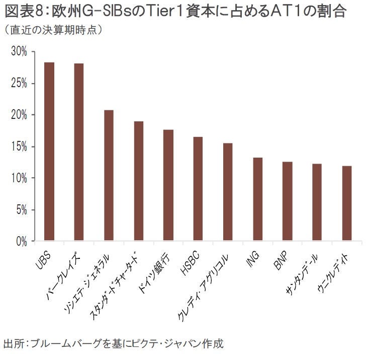 今後何らかの制度の手直しの議論がある場合、AT1債への依存度が高い欧州銀行へのストレスが高まる可能性もある(図表8)。