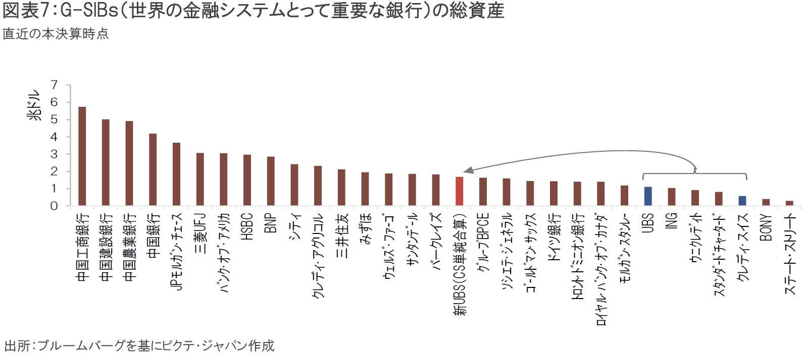 ただし、新UBSの規模を他のG-SIBsと比べると中位以下に過ぎない(図表7)。