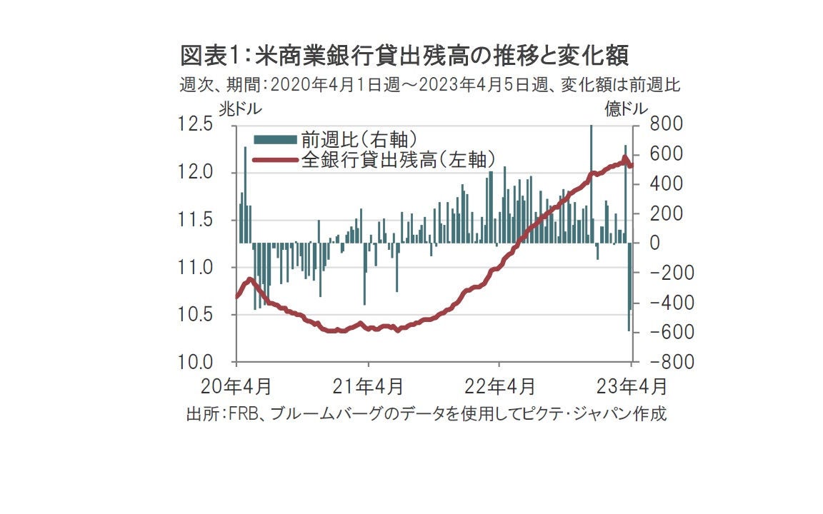 米連邦準備制度理事会(FRB)は2023年4月19日に地区連銀経済報告(ベージュブック)を発表しました。ベージュブックでは、全体の経済活動についてほとんど横ばいとの見方が示されました。銀行部門については、「混乱は緩和されたと見られるが、銀行は貸し出しを控え(図表1参照)、信用引き締めの兆候が見られる」と報告されています。