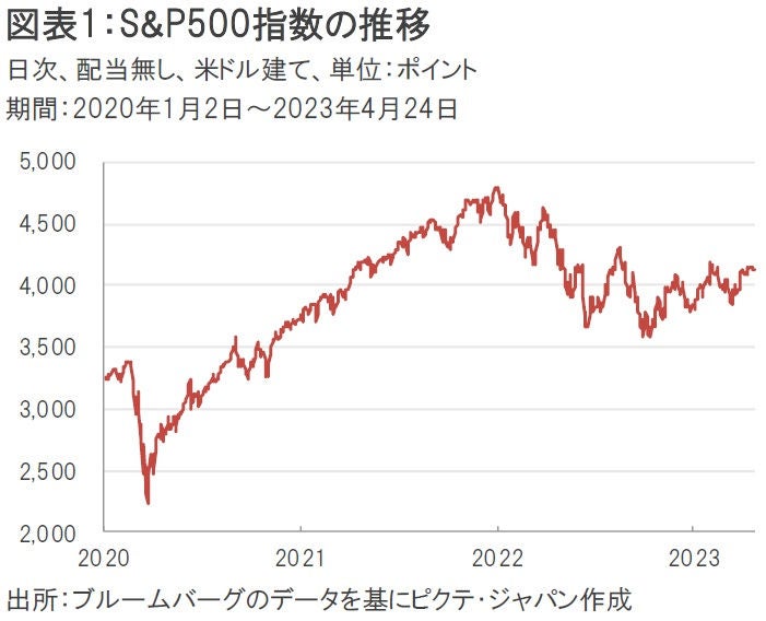 米国連邦債務上限の引き上げに関して連邦議会の調整が難航することが予想される中、S&P500指数は年初来で7.7%高(米ドル建て、配当無し)と今のところ平静を保っている(図表1)。
