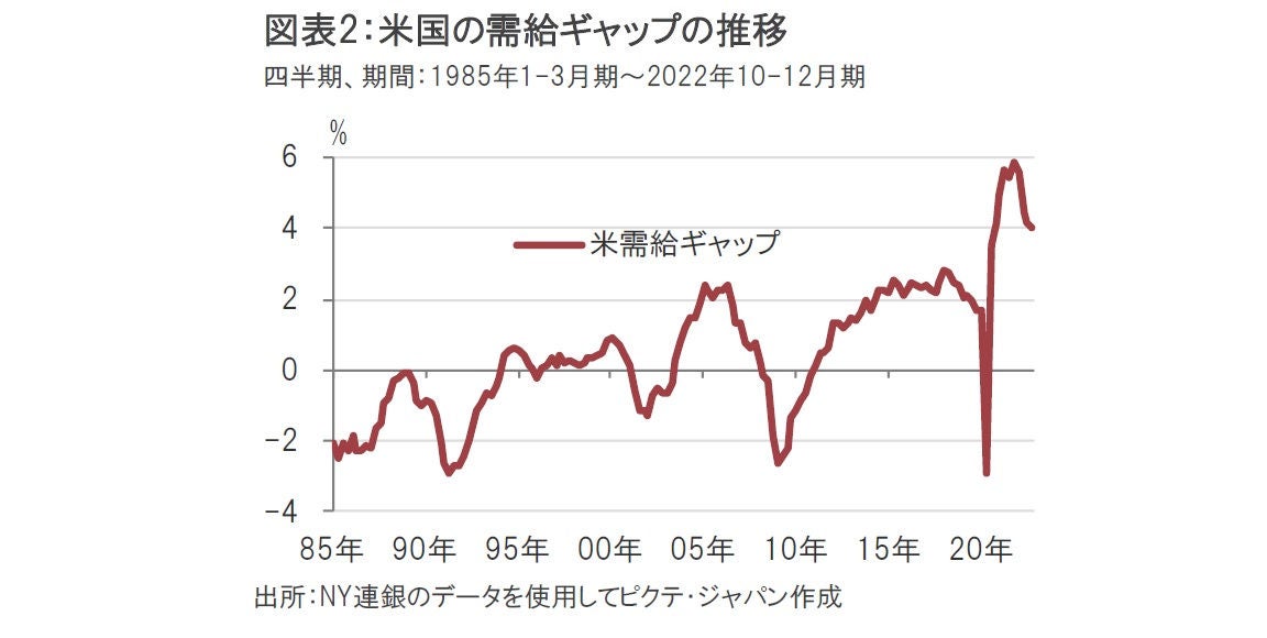 例えば、実際のGDP(国内総生産)と平均的な供給力を示す潜在GDPとの乖離を示す需給ギャップはコロナ禍に急激に変動し(図表2参照)、自然利子率の推定は困難になったと説明しています。一方で、先に述べたモデルに対しコロナ禍における変動を調整し自然利子率の推定値が算出できるよう工夫を重ねています。