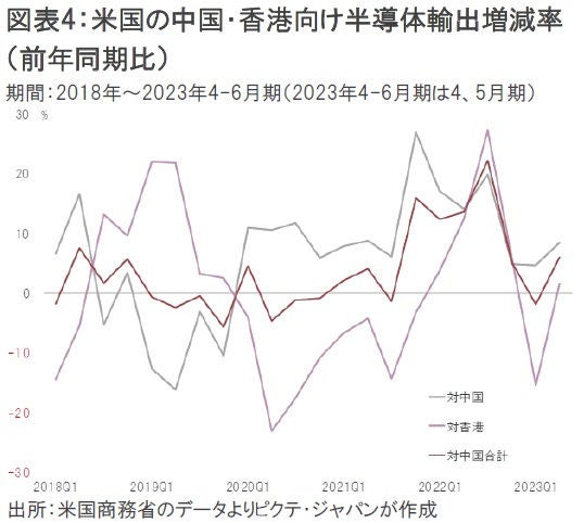 半導体需要が低迷していることに加え、米国に対する中国企業の警戒感を示しているのではないか。メモリに特化しているものの、今年1~5月、日本の対中半導体輸出は前年同期比6.1%増加した(図表4) 。
