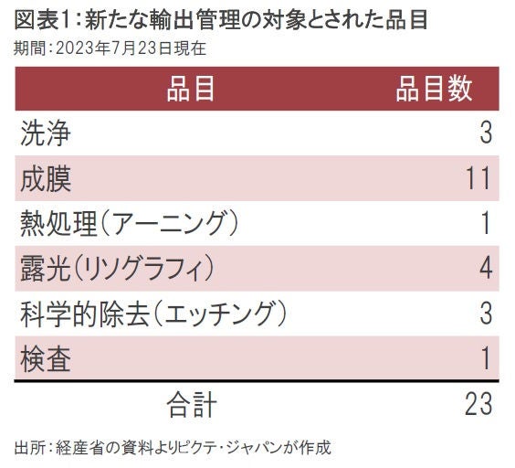 新たな輸出管理は、最先端の半導体を製造するための装置に関連する23品目について、安全保障上の観点から、輸出の際の手続きを強化するものだ(図表1)。